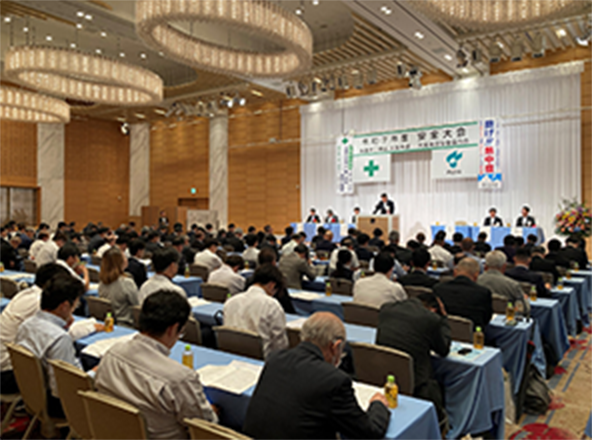 毎年6月、私たちは全国の拠点で「安全大会」を開いています。ここでは社員だけでなく、作業所で共に汗を流すパートナー企業の皆さんも一堂に集まります。 目的はただ一つ、作業所の「無事故・無災害」の決意をチーム全員で分かち合う大切なイベントです。