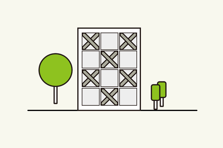 一方、制震工法とは、耐震構造の建物の壁や柱などにさらにダンパーなどの制震装置を組み込み、地震の揺れを吸収する構造です。