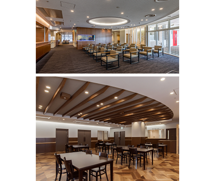 増築と既存建物の大規模な建物の更新に伴い、患者様やご家族が気軽にアクセスしやすい明るく開かれたイメージとなり、多様な疾病に対応できる設えになっています。