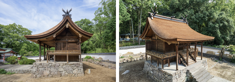 落雷により、檜皮葺き屋根の大部分と屋根の骨組みである小屋組み材の多くが焼損。